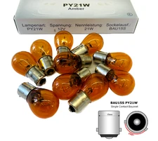 10 x BAU15S PY21W Lampen 21W 12V Birne Glühlampe Kugellampe Blinker Super