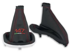 Schaltsack und Bremse für Alfa Romeo 147 Schwarzes Leder Stickerei Roten Nähten