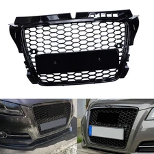 Kühlergrill + Emblem Waben Grill für Audi A4 S4 B8.5 2013-2016 Glanz Schwarz