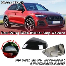 Kleben Spiegelkappen Schwarz Für Audi Q5 2017-2024 Q7 4M 15-25 Ohne Side Assist