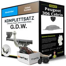 G.D.W. Anhängerkupplung abnehmbar & 13pol E-Satz für Peugeot 306 Cabrio 94- AHK